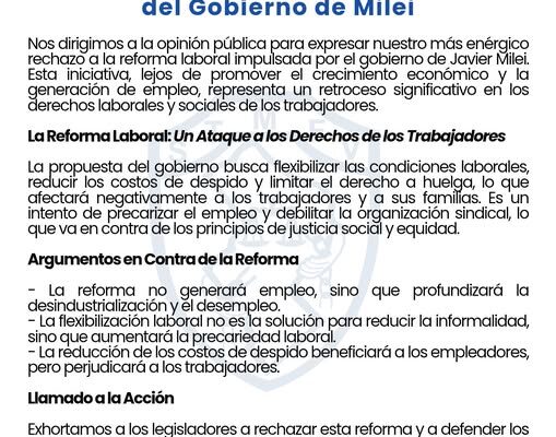 Rechazo A La Ley De Reforma Laboral Del Gobierno De Milei Dirección Directiva Secretario General Darío D’Aquino