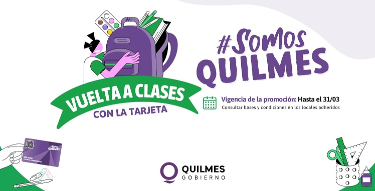 El Municipio de Quilmes informa que con motivo del inicio del ciclo lectivo 2026, los usuarios de la tarjeta de beneficios Somos Quilmes podrán obtener importantes descuentos, de entre el 10% y 30%, en librerías y locales de venta de artículos escolares del distrito, realizando su compra entre el 23 de febrero y el 31 de marzo, y así acceder a útiles y elementos necesarios para que las y los alumnos puedan comenzar las clases con todo lo necesario para poder estudiar.